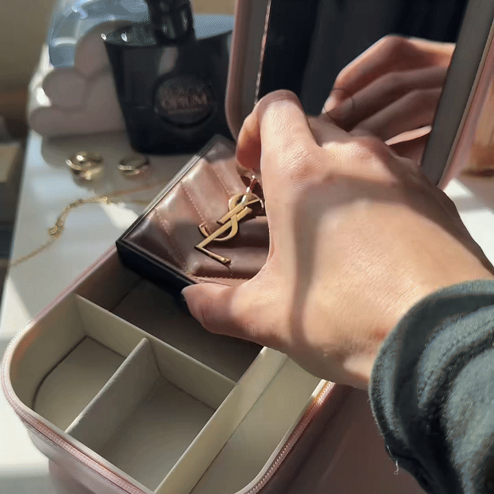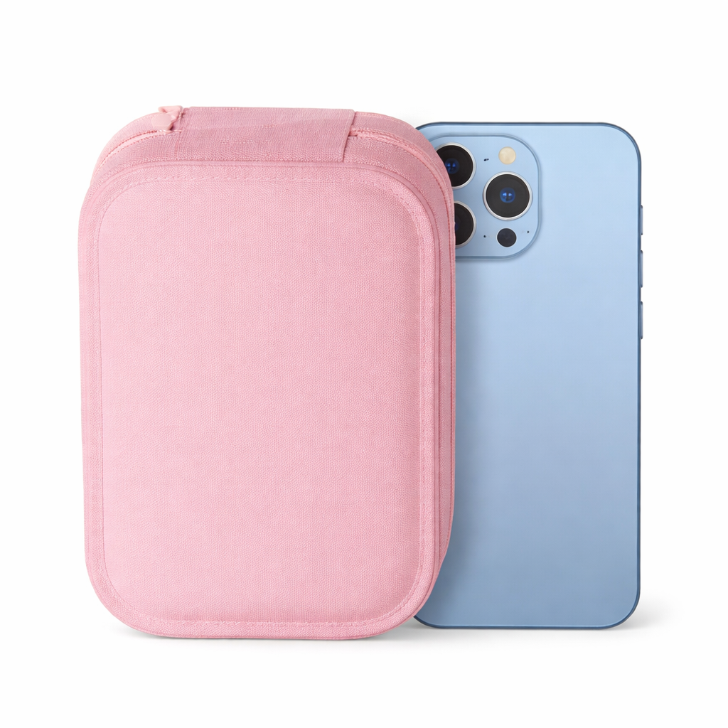 A compact LED makeup mirror case that keeps your beauty essentials organized and gives you perfect lighting wherever you go.